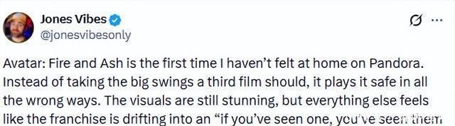 实质上这部《阿凡达3》赢得如斯倒霉的评价似乎并不让东说念主不测,毕竟这些差评早在3年前《阿凡达2》上映后便已运行,而看上去这部《阿凡达3》更像是一部《阿凡达2》的2.0版块。当这一系列电影褪去3D光环的技术,似乎正在向着粗拙之作而去。
