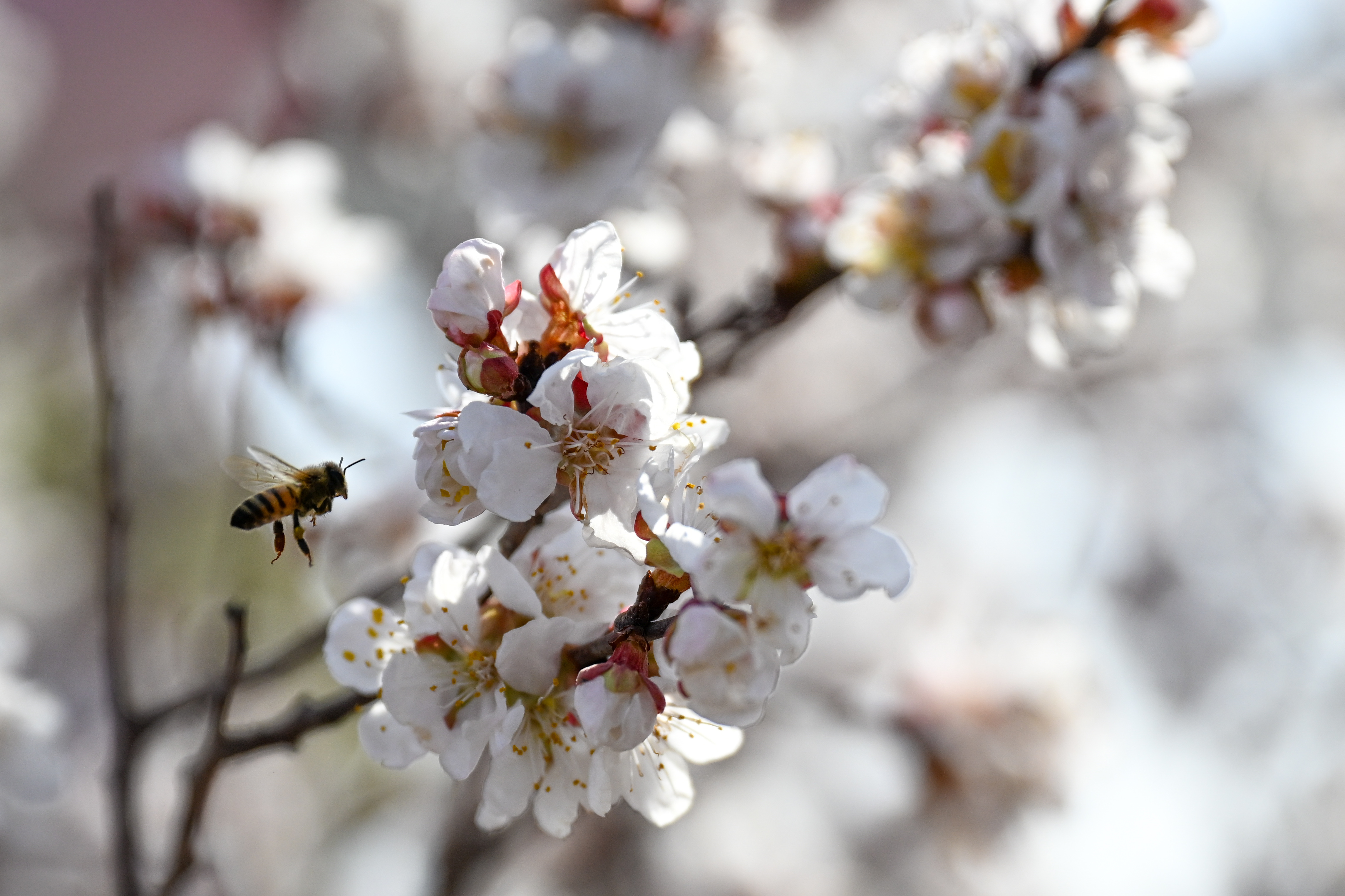 3月20日在新疆吐鲁番市托克逊县南湖杏花村拍摄的杏花。