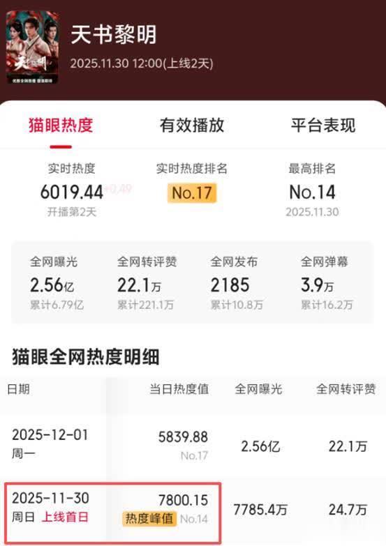 《天书早晨》开播,热度冲上榜单第一,势头迅猛。