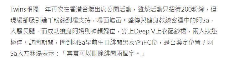 Twins相隔一年再次在香港合体出席公开活动,固然活动只理睬200粉丝,但现场却劝诱过千粉丝到场撑捏,时局吵杂越过。